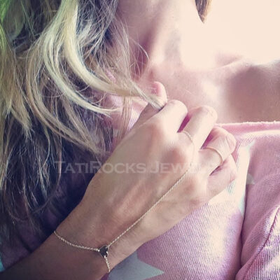 Gorgeous hand wired rosary hand chain made with gold ( or silver) beads and completed with a small heart cubic zirconia. It’s perfectly comfortable and wearable.